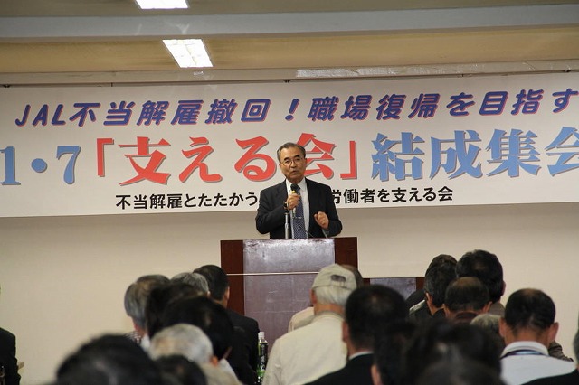 今度の問題はJALの公共交通としての社会的責任が鋭く問われていると思います。労働者の雇用を蔑にする、あるいは雇用にとって最も重要な整理解雇法理という重要なコンプライアンスに違反したという点においても、JALの責任が問われるべきものだろうと思います。雇用と団結、安全、公共性というものを一体的にとらえて、この闘いの社会的な広がりを作っていく。そしてすべての労働者にとっての問題であるということを、ぜひ訴えて頂きたいと思います。「支える会」を作ってJALの闘いを支えようと思っているのも、まさにそのことがこの闘いの意味であるからです。